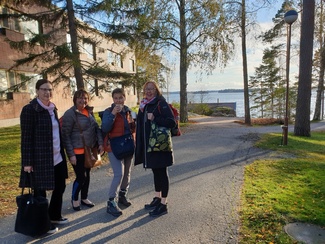 ![]() Hallitus kokoontui ensimmäistä kertaa livenä vuonna 2021. Kaikki muut hallituksen kokoukset pidettiin Teamsin kautta. | ![]() Vasemmalta Anna-Maria Saavalainen, Suvi-Päivikki Salo, Anne-Maria Konkola, Riitta Velin, Helinä Hämäläinen, Tiina Karhunen ja edessä Tuija Karhula |